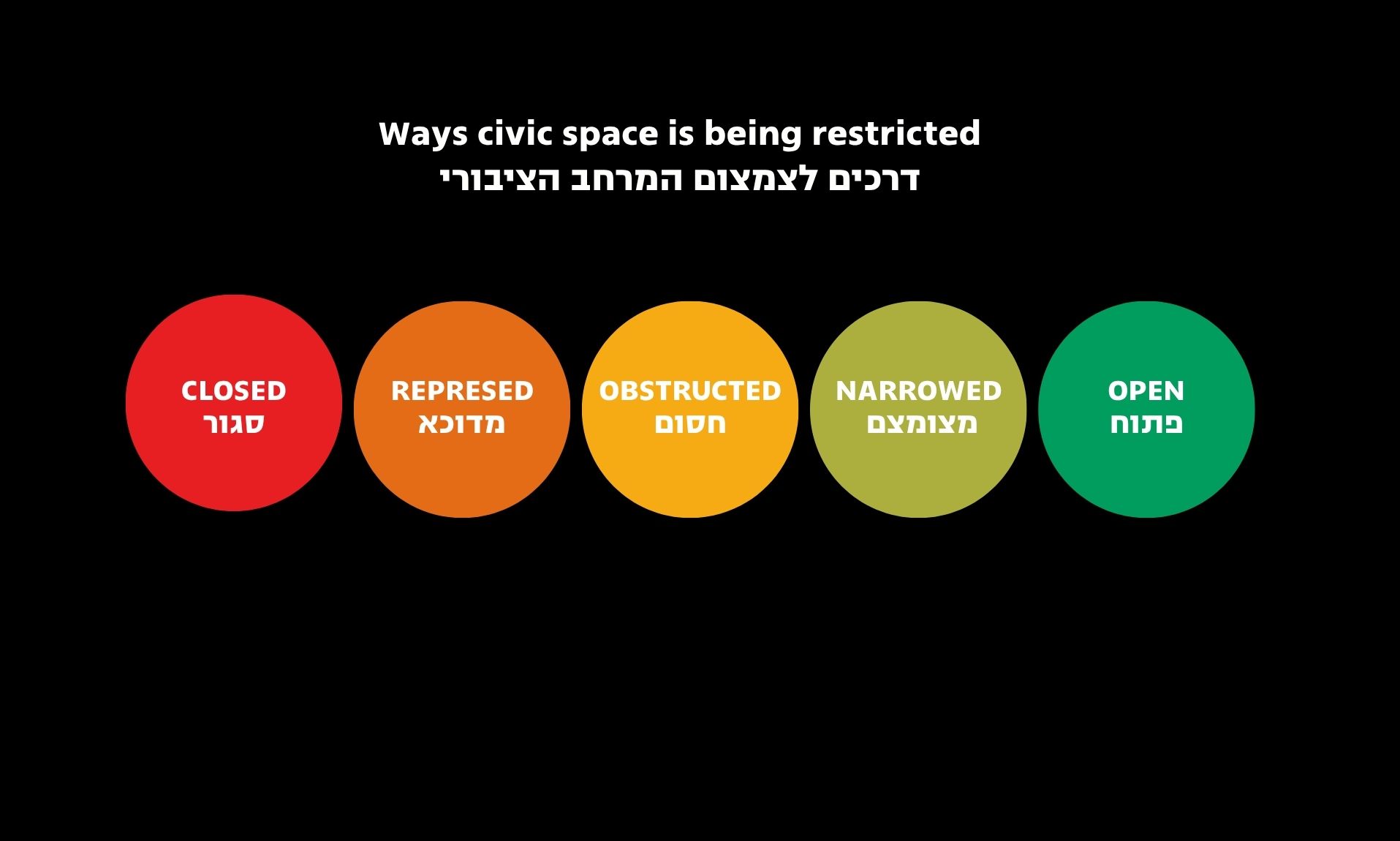 המדד מדרג 198 מדינות וטריטוריות על פי מידת הפתיחות של המרחב האזרחי בהן באחת מחמש קטגוריות: מרחב פתוח, מצומצם, מוגבל, מדוכא וסגור. בדוח השנתי האחרון מ-2024, מדורגת ישראל בקטגוריה של מרחב מוגבל עם ציון של 47 מתוך 100.